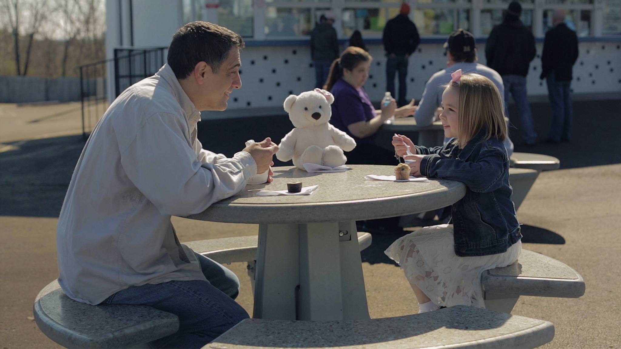 Dan (Dennis Saldana) has decided to take a ride with his little girl (played by Abigail Bausworth), as he promises to take her anywhere she wants. They stop to grab some ice cream – one of her favorite things – as they converse about some of her other favorite things along the way – soccer, the jungle gym at her old school, and an important message that her mom wanted her to share with her daddy too…