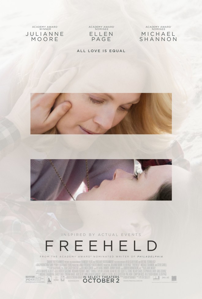 Inspired by actual events, Julianne Moore and Ellen Page portray the beautiful love story between Laurel Hester (Moore) and Stacie Andree (Page) in the upcoming feature, FREEHELD. After being diagnosed with cancer, Laurel wishes to leave her pension to her domestic partner Stacie, until she is denied by the local county officials. With the help of her allies, including Laurel’s longtime colleague detective Dane Wells (Michael Shannon) and activist Steven Goldstein (Steve Carell), Laurel will do anything she can to support her partner and fight for equality.