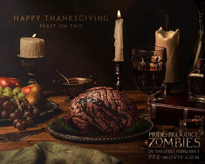Happy Thanksgiving~ Now, FEAST ON THIS…PRIDE + PREDJUDICE + ZOMBIES Hits theaters February 5th…