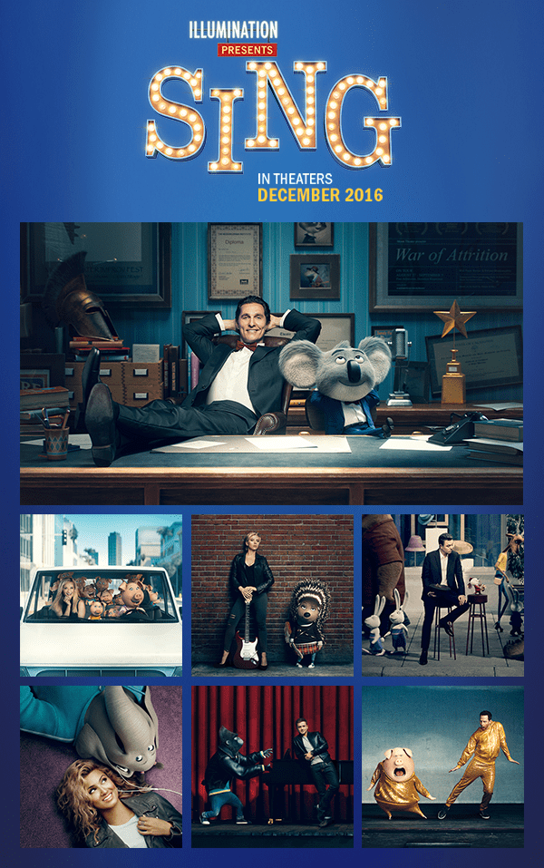 Illumination has captivated audiences all over the world with the beloved hits Despicable Me, Dr. Seuss’ The Lorax, Despicable Me 2 and Minions, now the second-highest-grossing animated movie in history. Following the release of this summer’s comedy blockbuster The Secret Life of Pets, Illumination presents Sing this holiday season.
