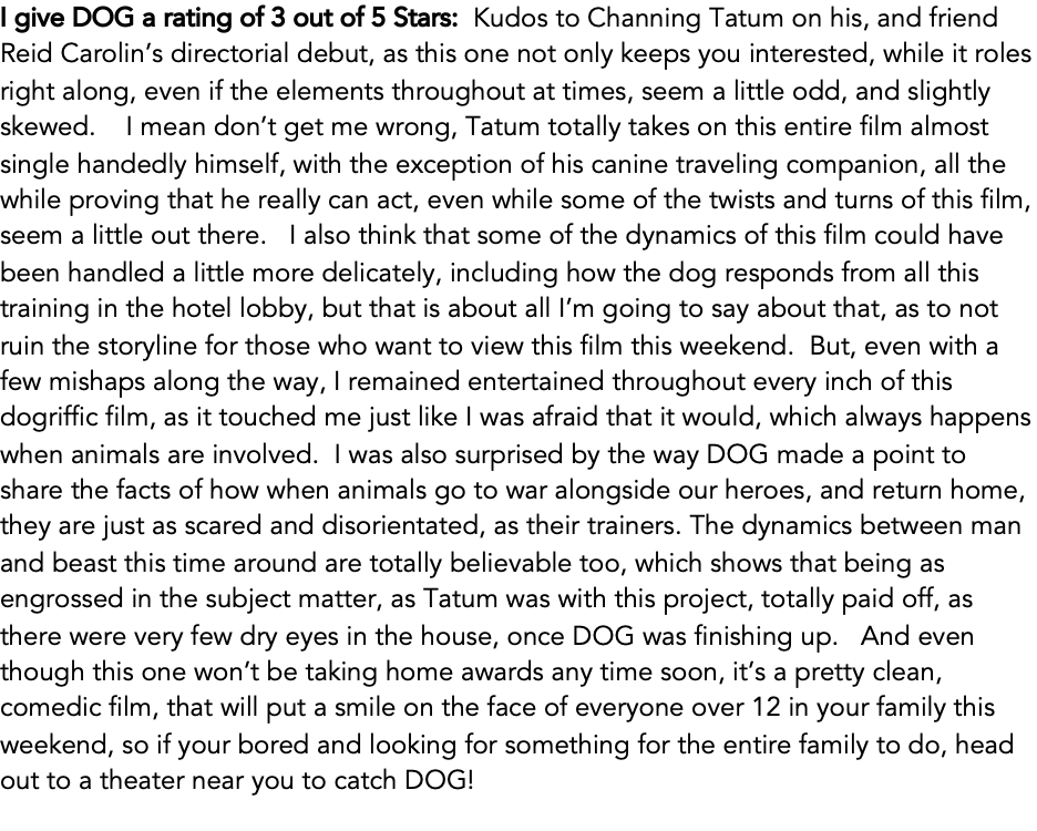 DOG – Rated PG-13 – 1 hr. 41 mins.